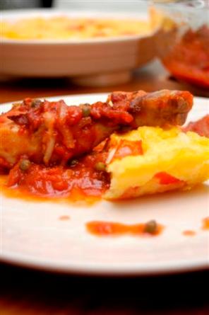 Pizzaiolon kanankoipia ja paprika-polentaa