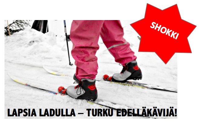 Turussa on vihdoin puututtu erääseen aikamme suurimpaan ongelmaan: lapsiin hiihtoladulla. Nokian taas tänään ilmoittamat tuhannen hengen potkut ovat kuulkaa pieni murhe tämän rinnalla ja olen erittäin iloinen siitä, että asiassa on ryhdytty toimenpiteisiin kirjallisella varoituksella kouluille. Mutta tämä ei missään nimessä riitä ja siksipä Perjantaikokki on nyt lähtenyt ajamaan asiaa!