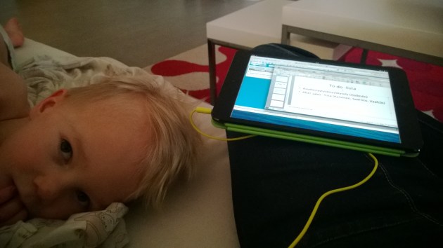 Monelle tekniset vempeleet aiheuttavat vain hampaiden kiristelyä. Niin minullekin, silloin kun ne eivät toimi. Takavuosina paljon enemmän kuin nykyään. Kehitys kehittyy! Toimiessaan vekottimet mahdollistavat vaikka mitä. Kuten vastaheränneen kolmivuotiaan pellavapään tukan silittelyn kesken myyntipalaverin, johon osallistun vekottimella kotisohvaltani.