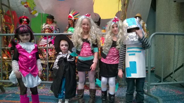 Kun sitten päästiin karnevaaleihin, niin puku pysyi päällä viitisen minuuttia. Sen kanssa kun ei oikein voinut riehua…