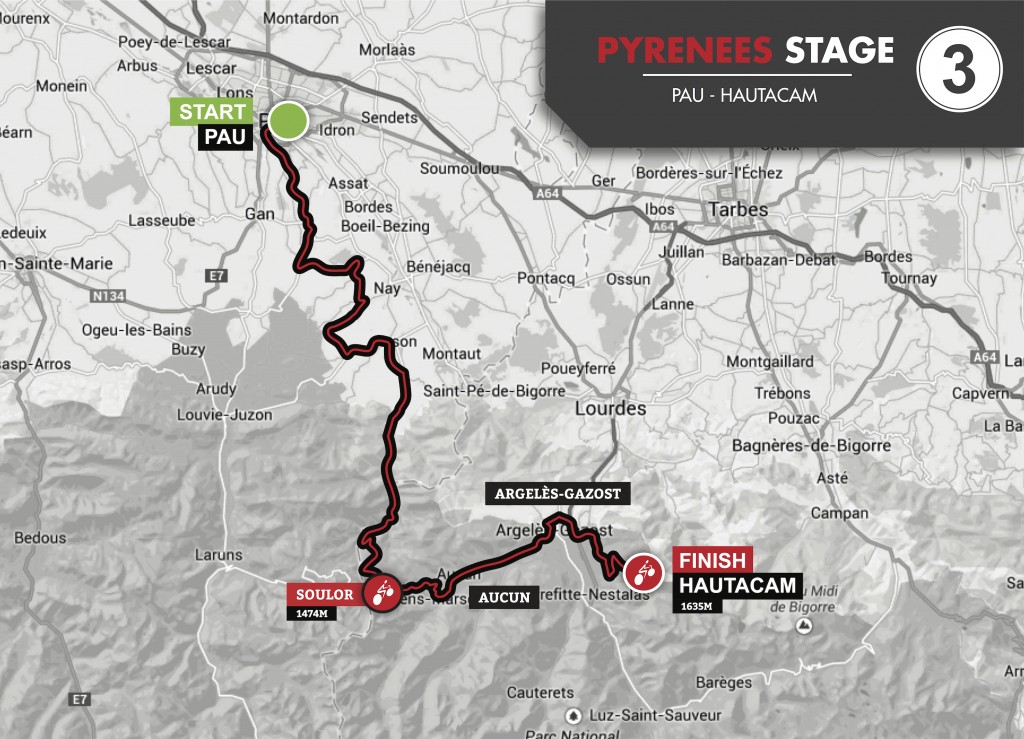 Nousua kertyi mittariin kummuista lähes 700 metriä jo ennen päivän ensimmäistä virallista nousua, joka oli Col du Soulor. Mäki nousi 1474 metrin korkeuteen 22,5 kilometrin matkalla. Nousua kertyi tästä nyppylästä kerralla 1194 metriä, joten varsin kookas mäki oli kyseessä.