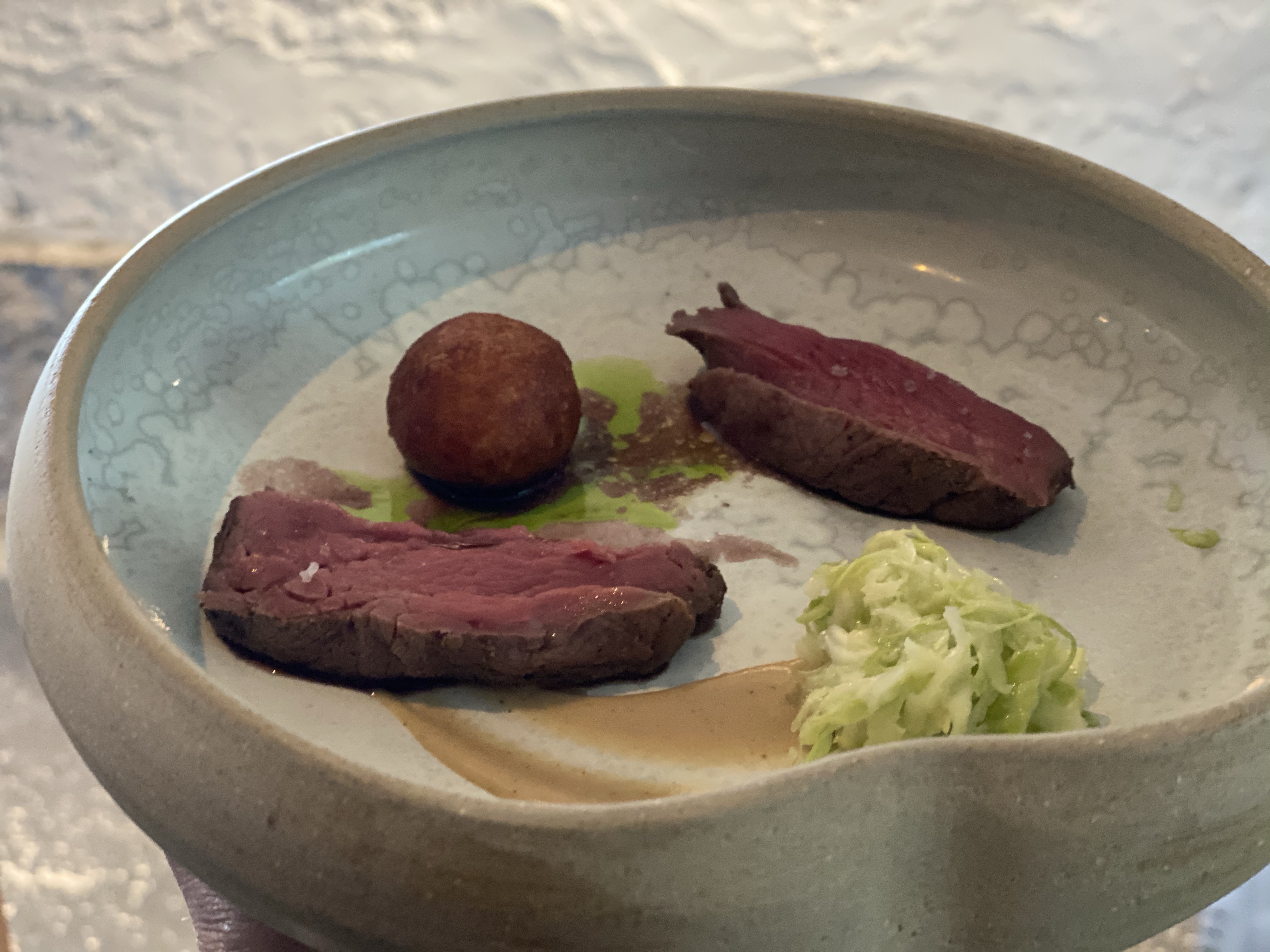 Otimme viiden ruokalajin maistelumenun (tarjolla olisi ollut myös kolmen lajin menu) sekä viinipaketin. Ruoka oli joko hyvää tai erinomaista. Varsinkin myskikurpitsakeitto oli jopa taivaallista! Palvelu oli rentoa, ystävällistä ja ammattimaista. Tätä paikkaa voin todella suositella! Korpoströmistä se on taksimatkan päässä (n. 25 minuuttia), mutta moottoriveneellä pääsee ravintolan laituriin, josta on tosin sieltäkin jonkin verran vielä kävelyä.