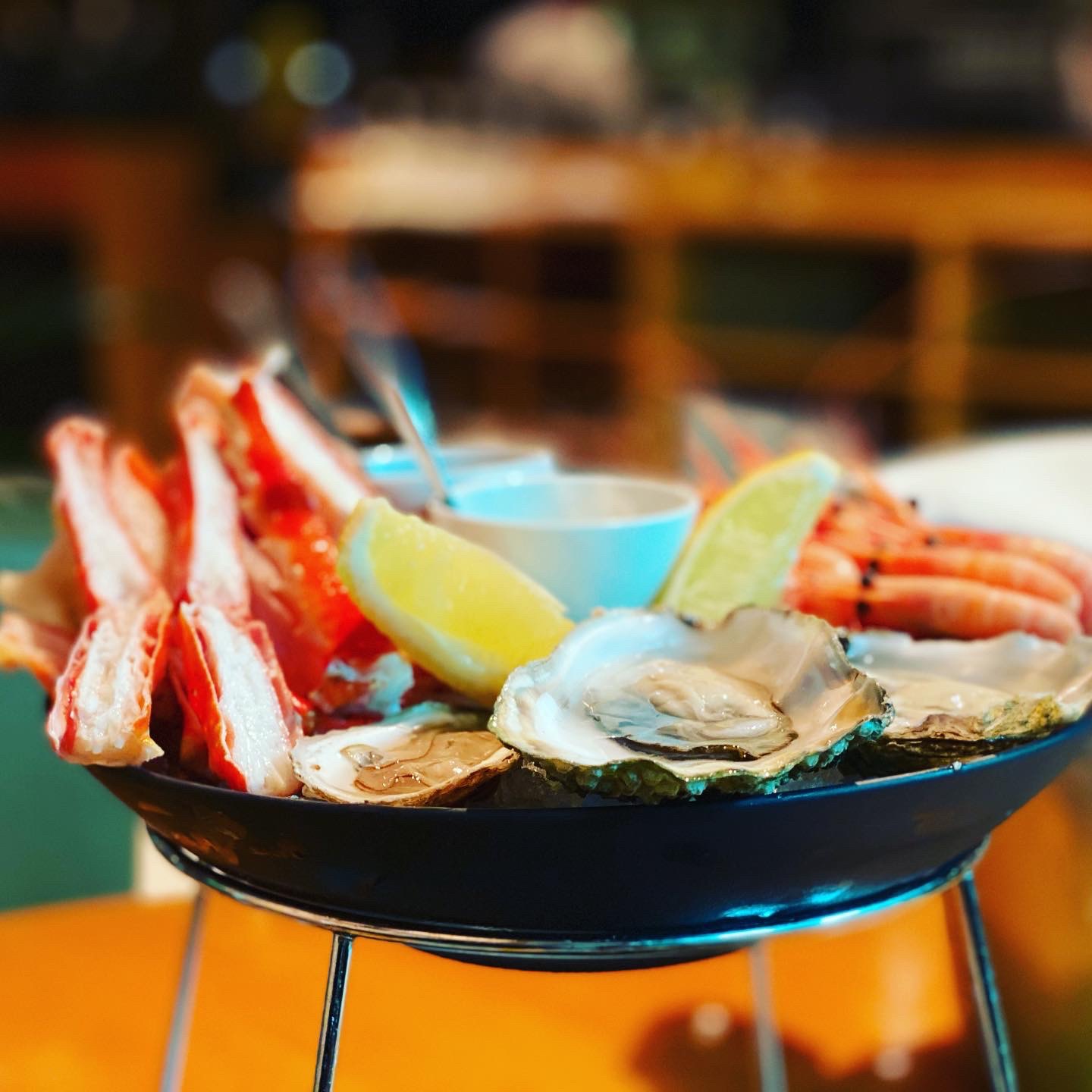 Fiskekompanietin äyriäisvati oli kruunattu kuningasravuilla. Siihen kylkeen pari lasia kylmää Rieslingiä, niin kuski oli valmis petiin.