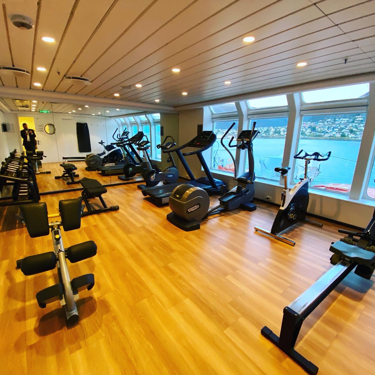 Itse laiva on pienen ruotsinlaivan kokoinen ja näköinen. Ravintoloita on kolme, baareja pari, kuntosali, pieni matkamuistomyymälä ja ulkoporeammeet löytyvät palveluista. Olin tilannut puolihoidon, johon kuului illalliseksi joku perusmenu, mutta koska carte-ravintolan avokeittiön tekeminen näytti ammattitaitoiselta ja ravintolassa oli vielä tilaa, buukkasin meille sinne illallisen. Jälleen kerran norjalaiset raaka-aineet oli taiten laitettu. Palvelua Norjassa kokemuksemme mukaan leimaa positiivinen välittömyys ja iloisuus. Kertaakaan emme törmänneet – missään roolissa – asiakaspalvelijaan, jolla olisi ollut naama väärinpäin.