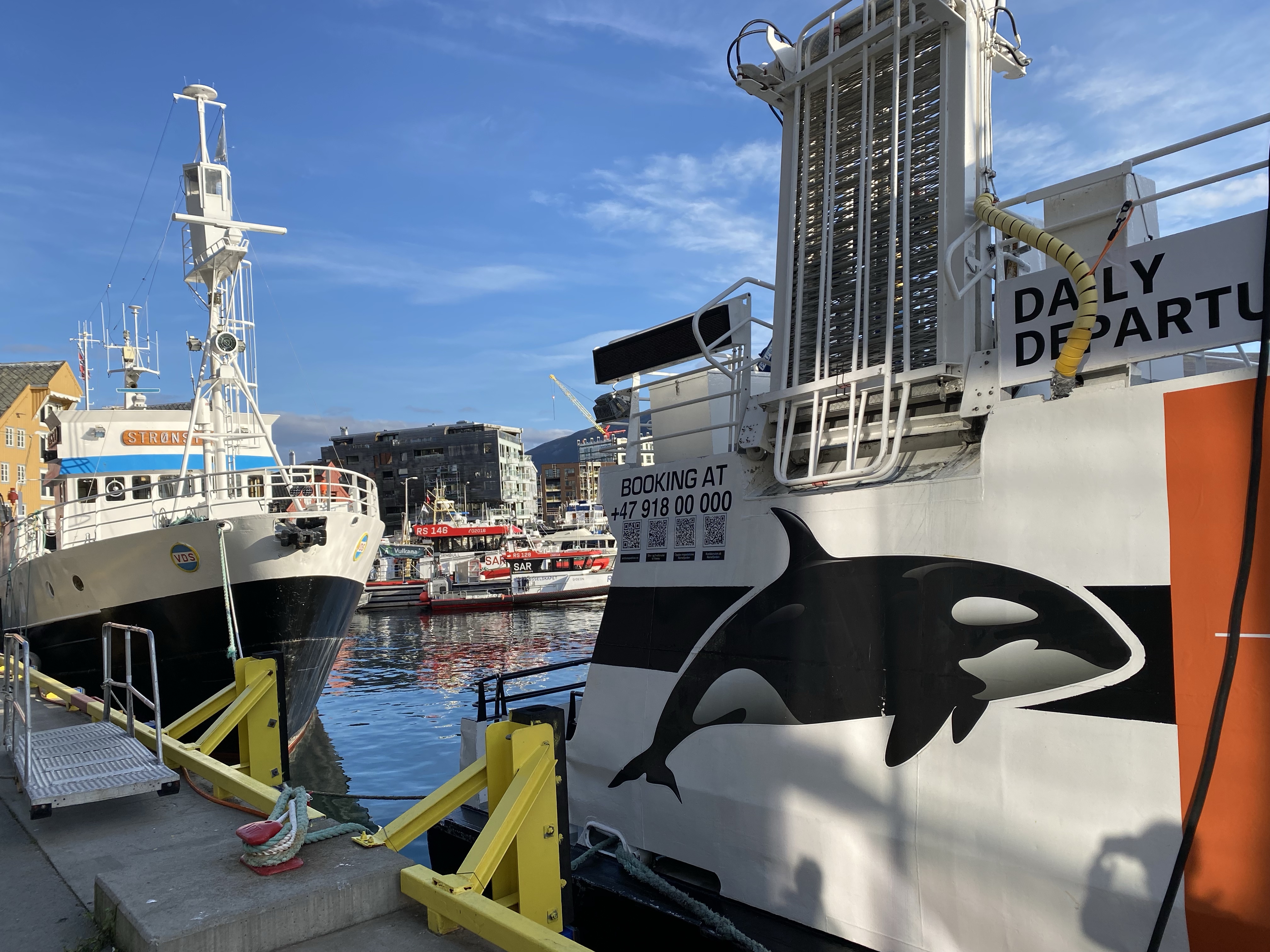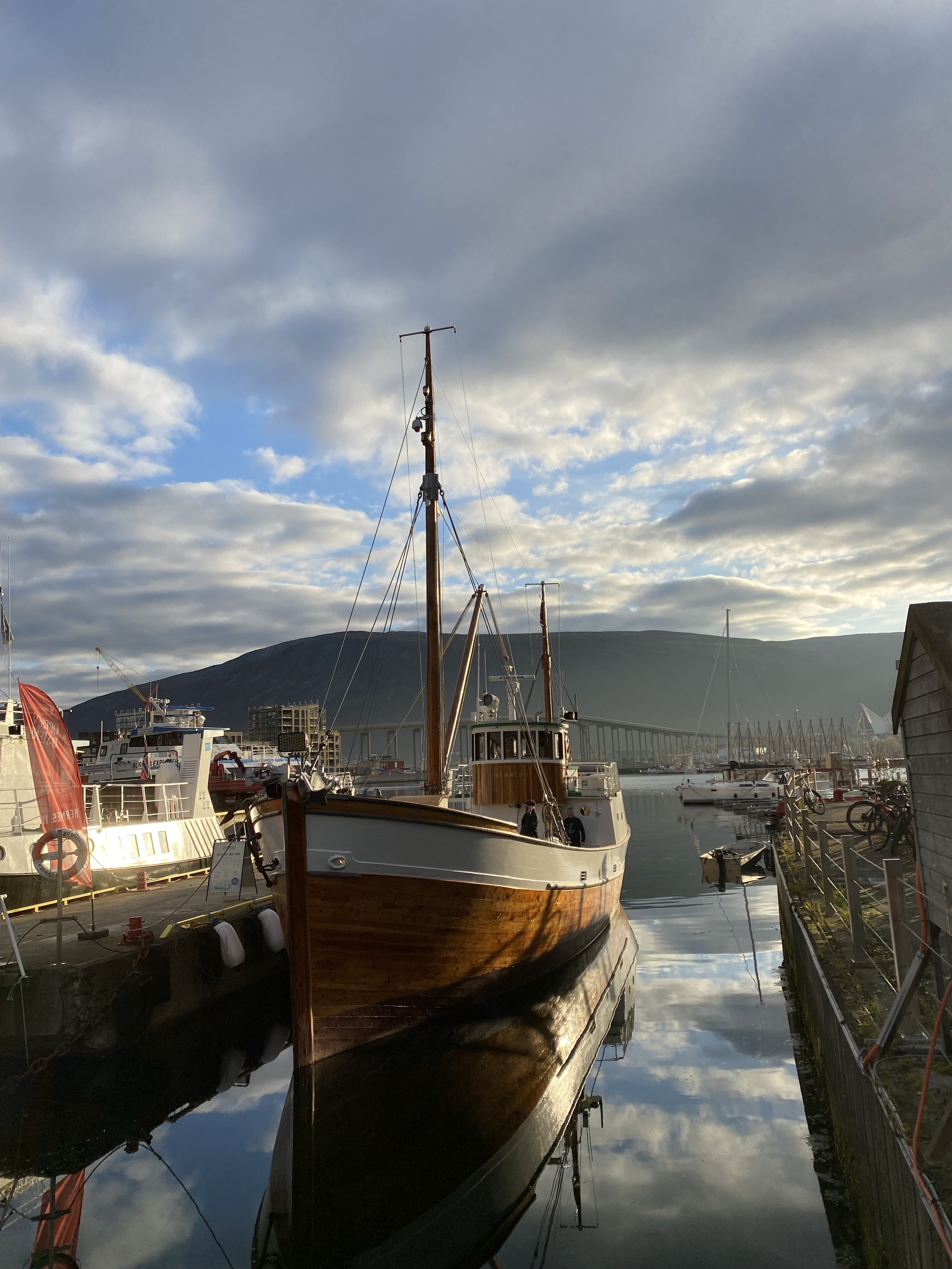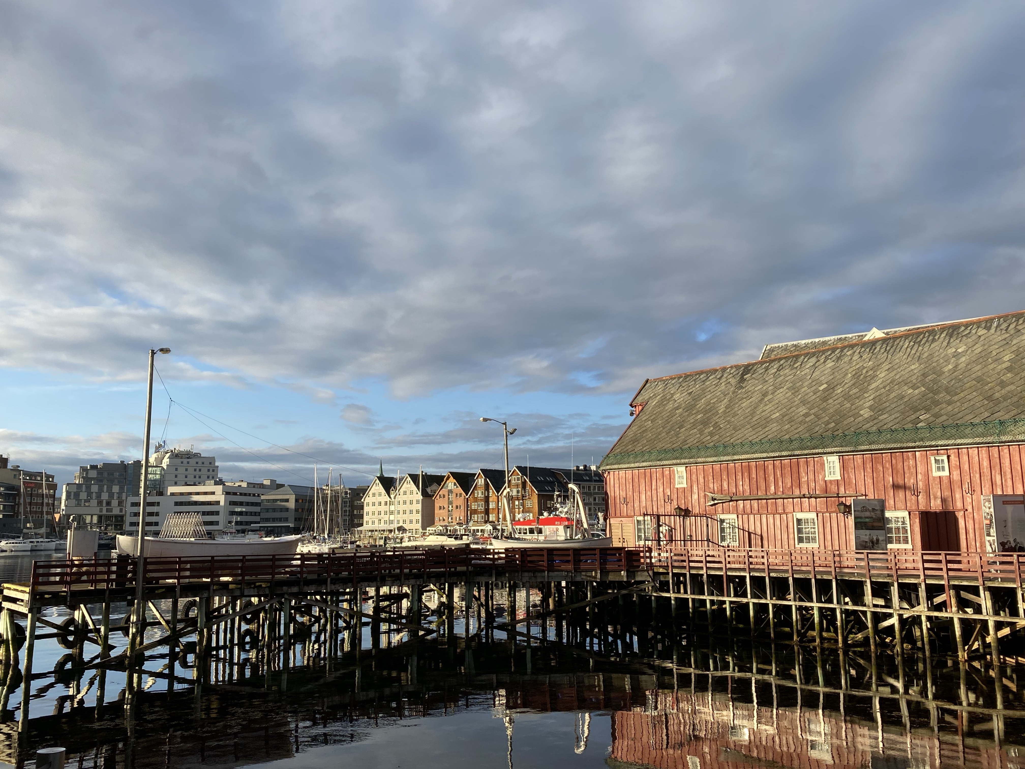 Tie vei Tromssaan, johon saavuimme pimeän jo laskeuduttua. Kaupunki näytti iltavalaistuksessaan maagiselta. Vuonomaisemista saimme nauttia hieman jo matkalla, mutta varsinaisesti niihin oli tarkoitus perehtyä Hurtigruten-laivan kyydissä seuraavana päivänä.