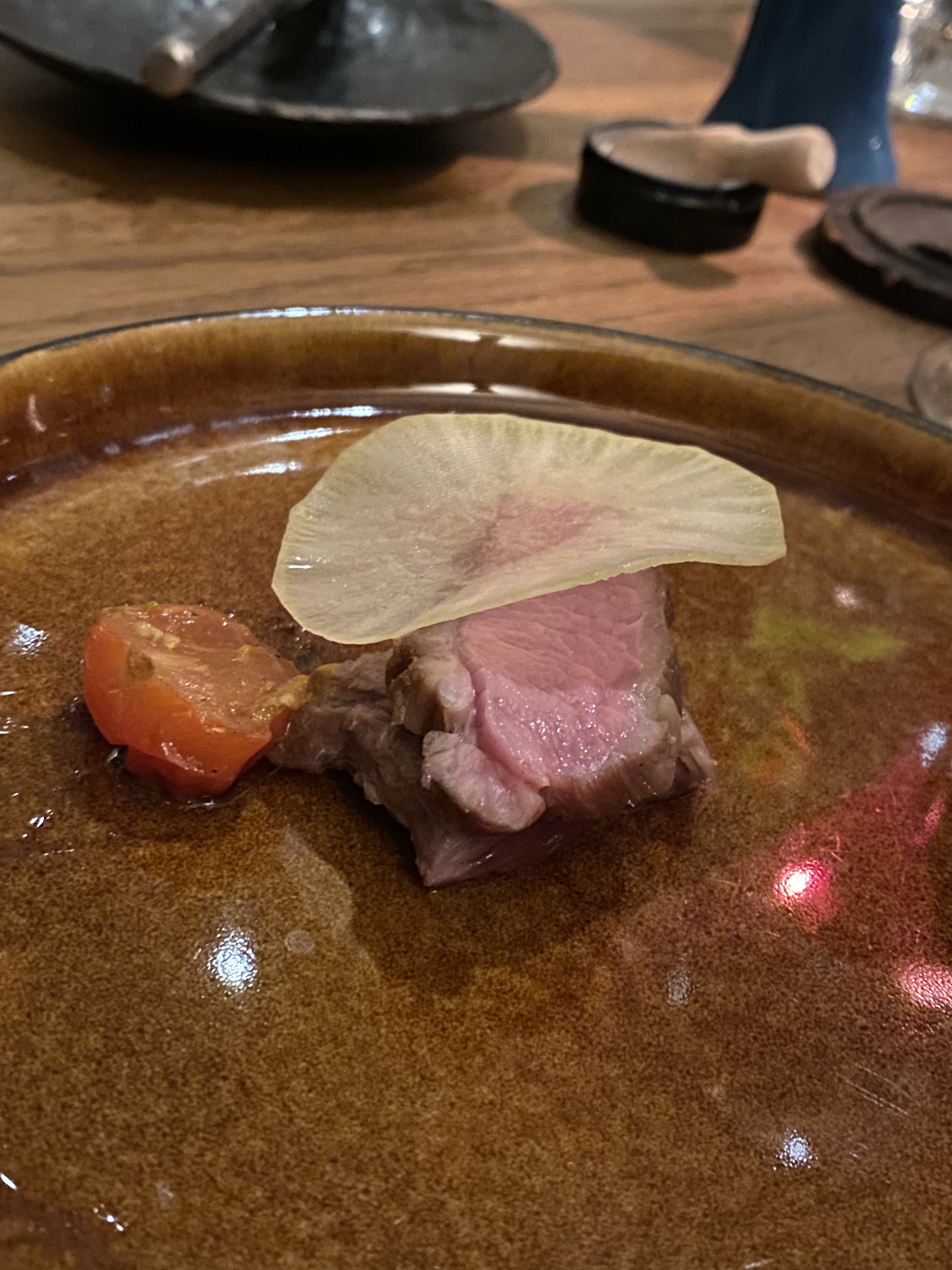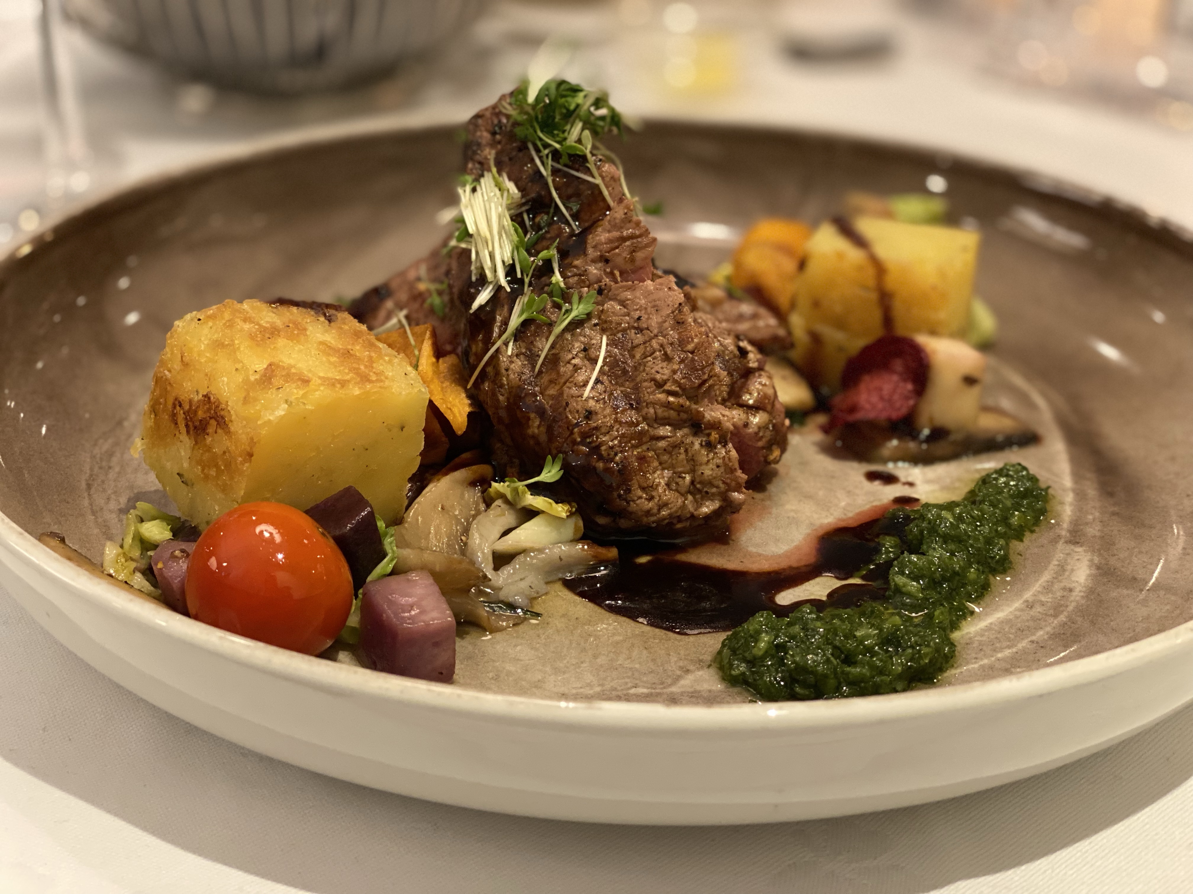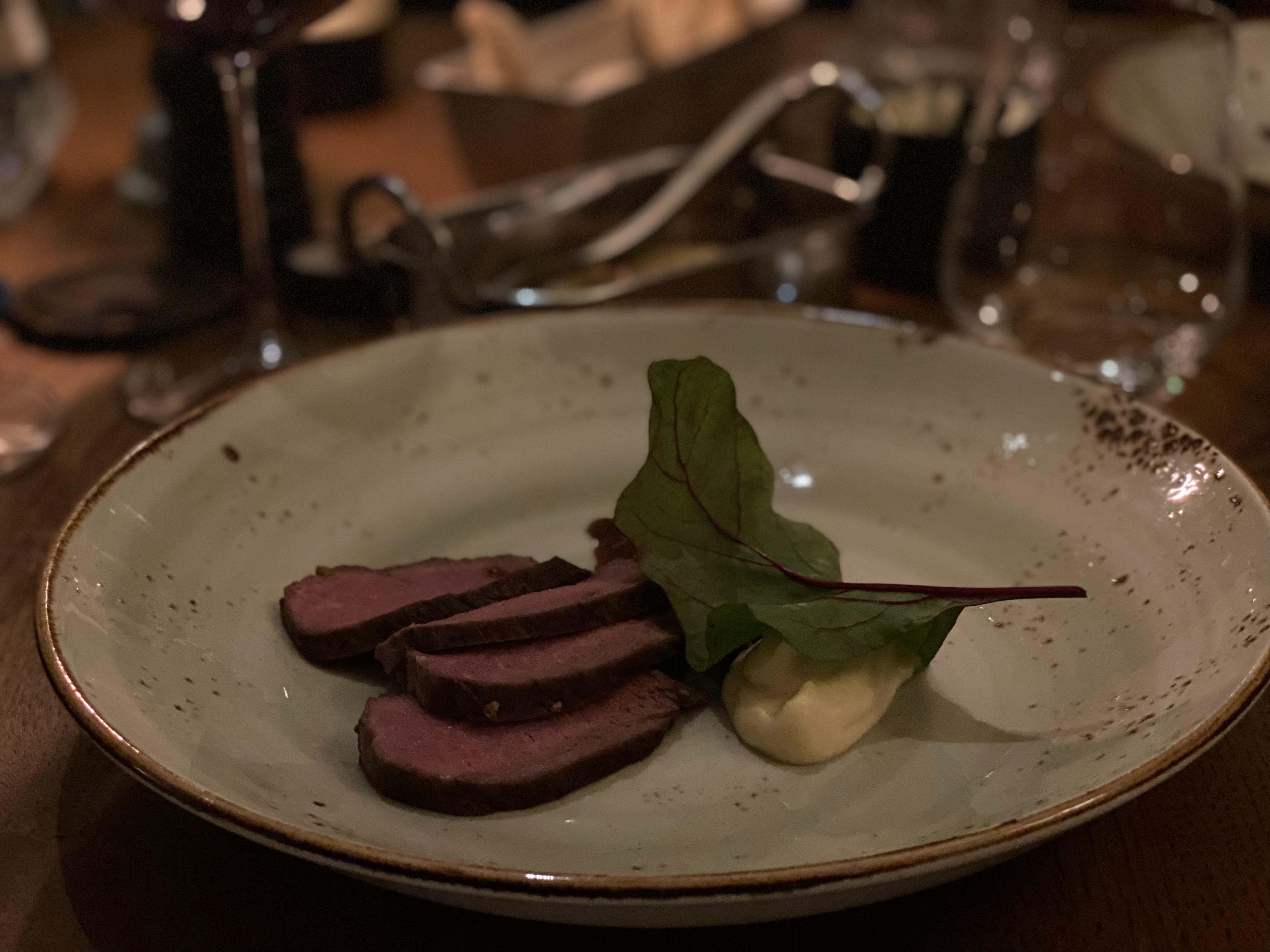 Emme valittaneet! Ruoka oli taivaallista ja kirjaimellisesti läheltä. Porot viereisestä tunturista, kalat sekä äyriäiset Altan vuonosta, yrtit pihalta ja leivät omasta leipomosta. Viinit olivat onneksi Italiasta, Ranskasta ja muista perinteisemmistä viinimaista.