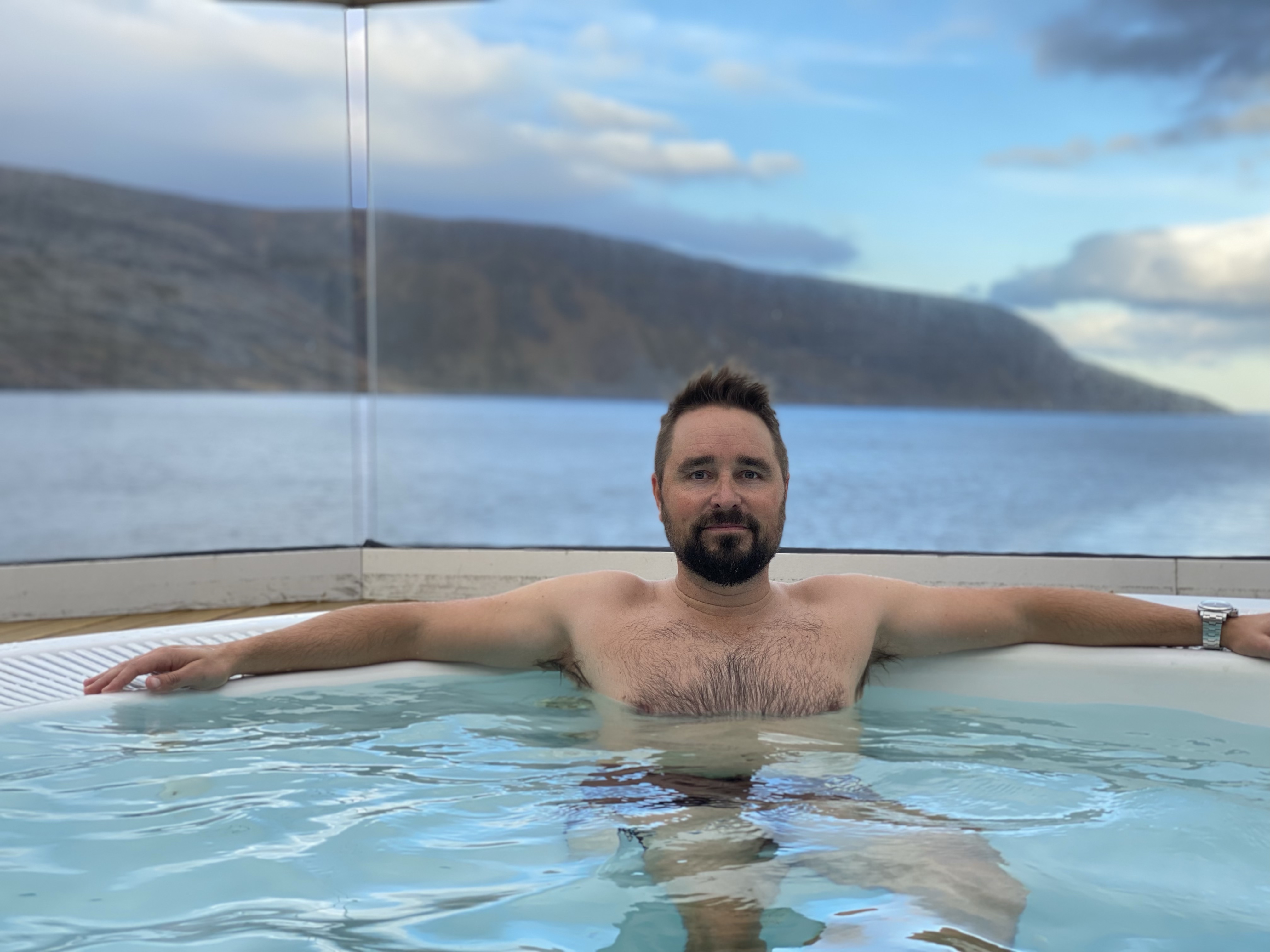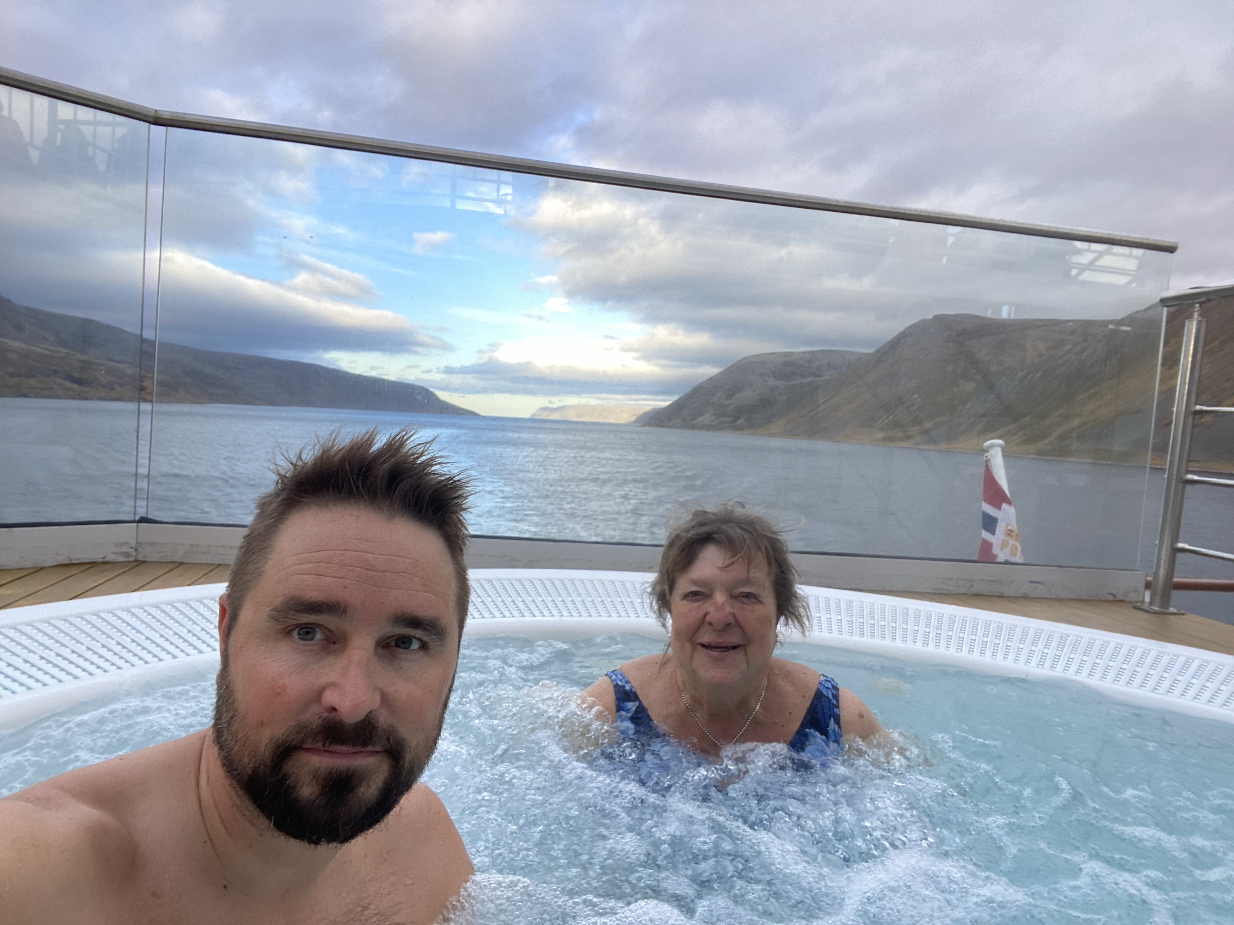 Aamulla nautimme aamiaisesta, testasin kuntosalin ja ”uimme Jäämerellä” – tosin 37-asteisessa poreammeessa. Ei hullumpi tapa matkustaa!