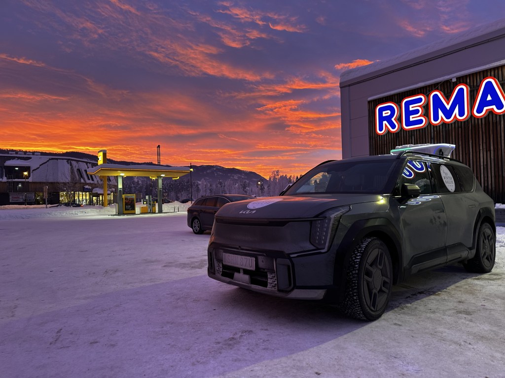 Aamiaisen jälkeen oli kotiinlähdön aika. Laskin, että meille riittää mainiosti lähtö kello 9.00, vaikka lataammekin autoa matkalla tunnin verran. Aikaakin jäisi yli. Ensimmäisellä latauspaikalla Norjan Kautokeinossa katselin Route Plannerin suunnitelmaa ja totesin, että tulemme saapumaan Rovaniemelle 30 minuuttia autojen lastauksen päättymisen jälkeen. En ollut ottanut huomioon sitä faktaa, että rajaa ylittäessä katoaa kellosta yksi tunti kuin taikaiskusta. Yhtäkkiä tulikin kiire.
