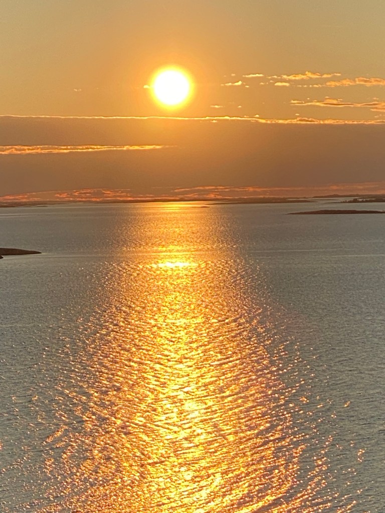 Aamulenkin ja -uinnin jälkeen otimme irti ja ajoimme koneella kohti Glada Laxenia. Tuuli ei virinnyt missään vaiheessa, joten homma meni konemarssiksi. Meitä se ei sinänsä haitannut, sillä oli mukavaa syödä lounasta keikkumattomassa veneessä 🙂