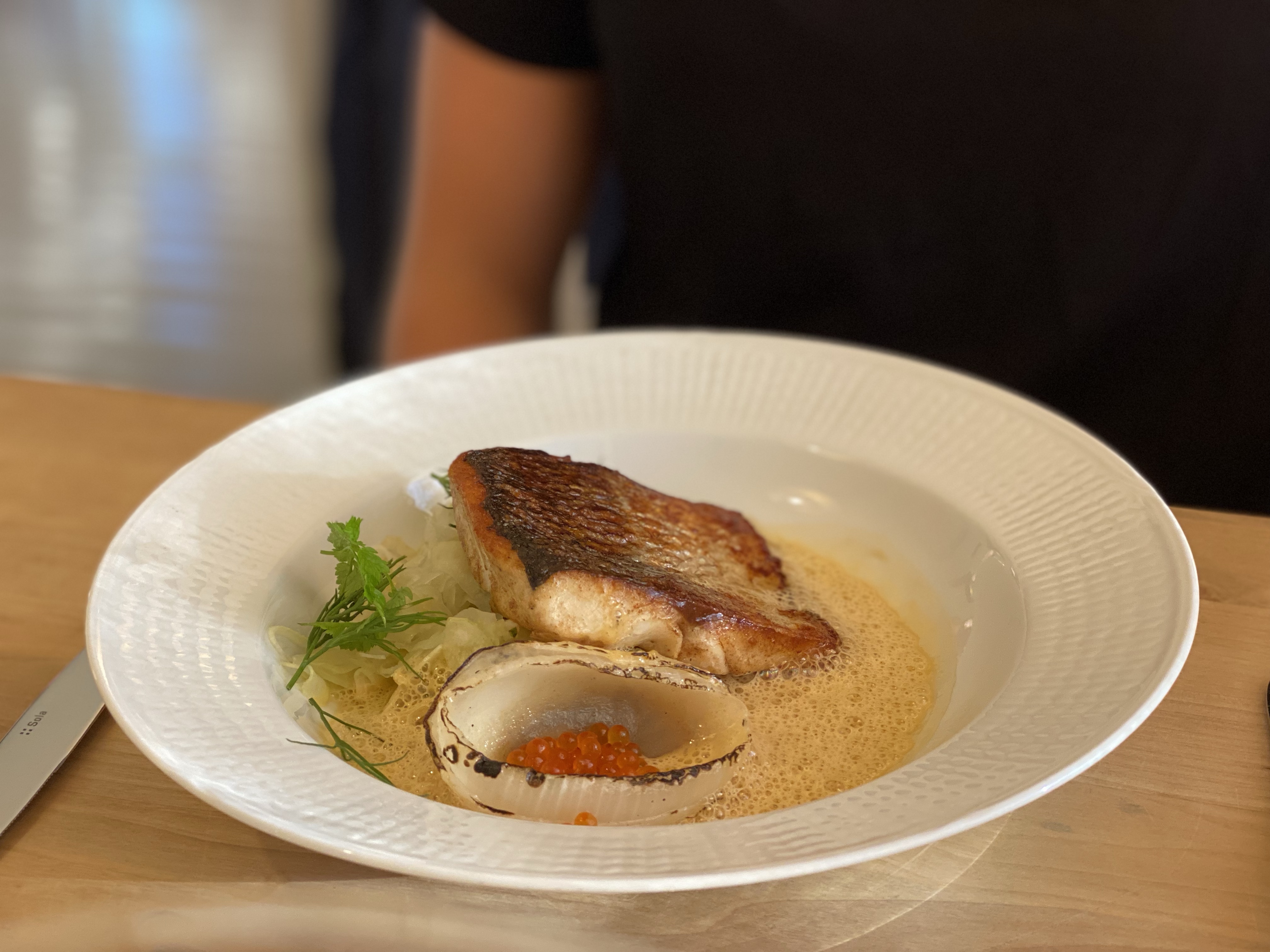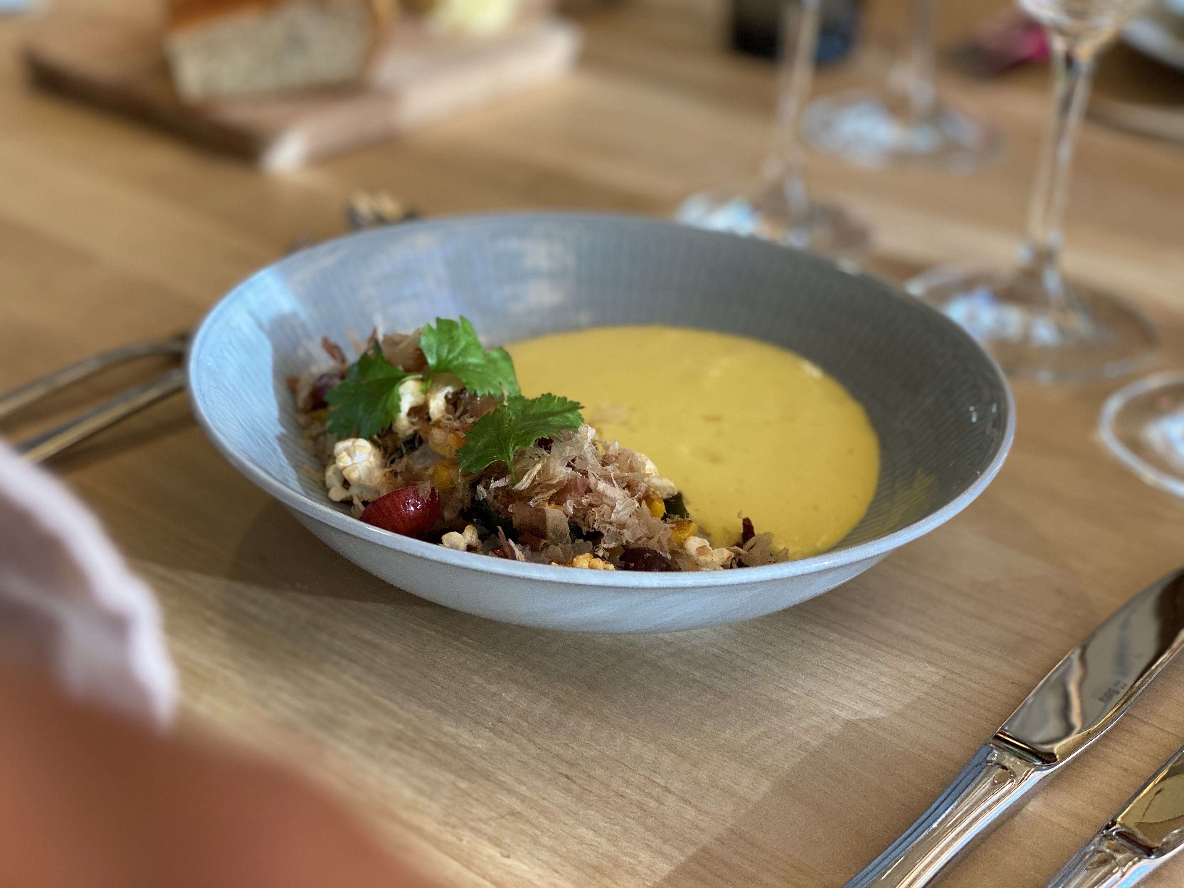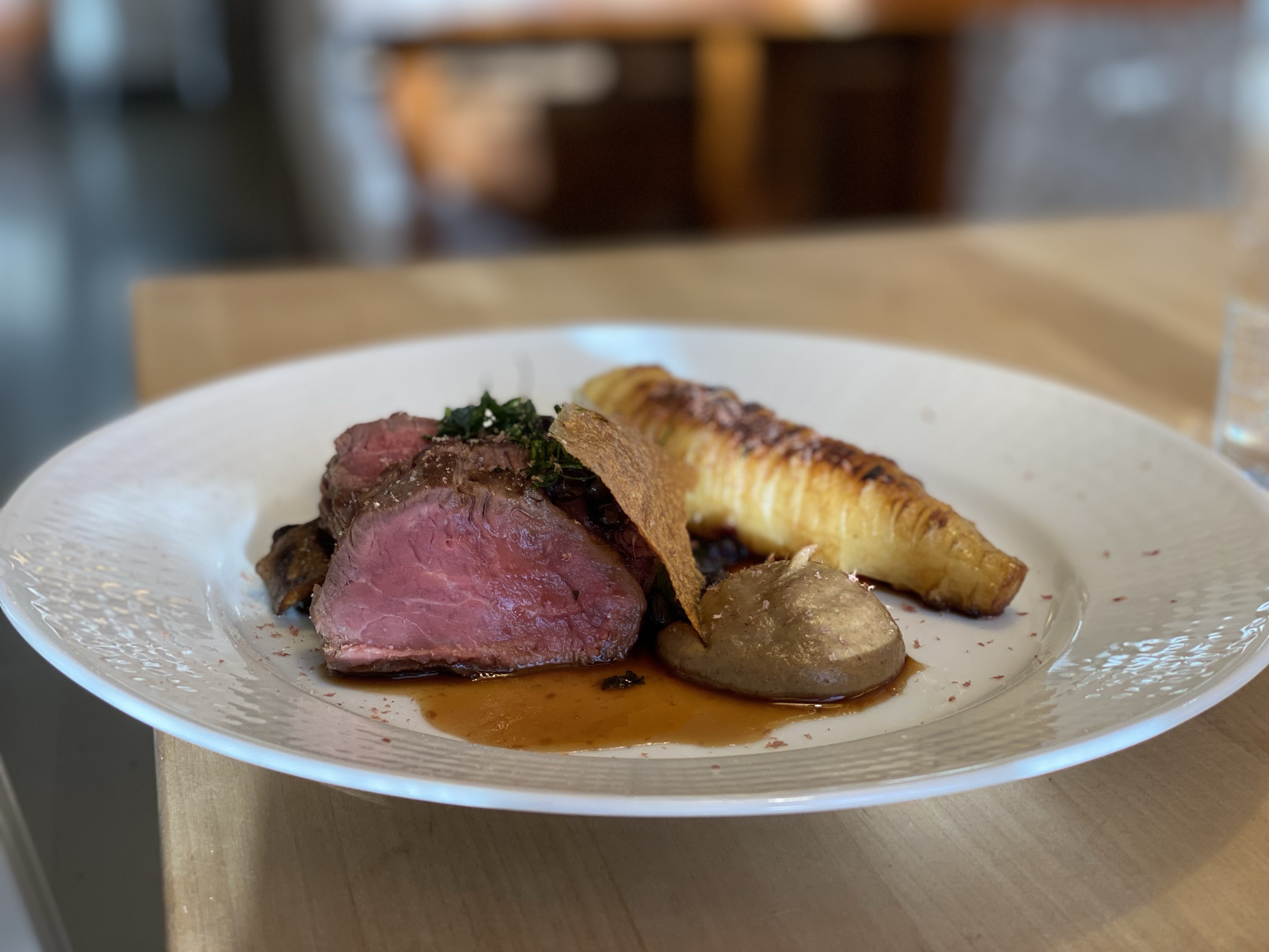 Näin tosiaan oli. Alkuruuassani oli kuhaa ja popkornia. Pääruuassa lihaa ja palsternakkaa. Jälkiruuassa lakritsia. Herkullinen kokonaisuus upeassa miljöössä.
