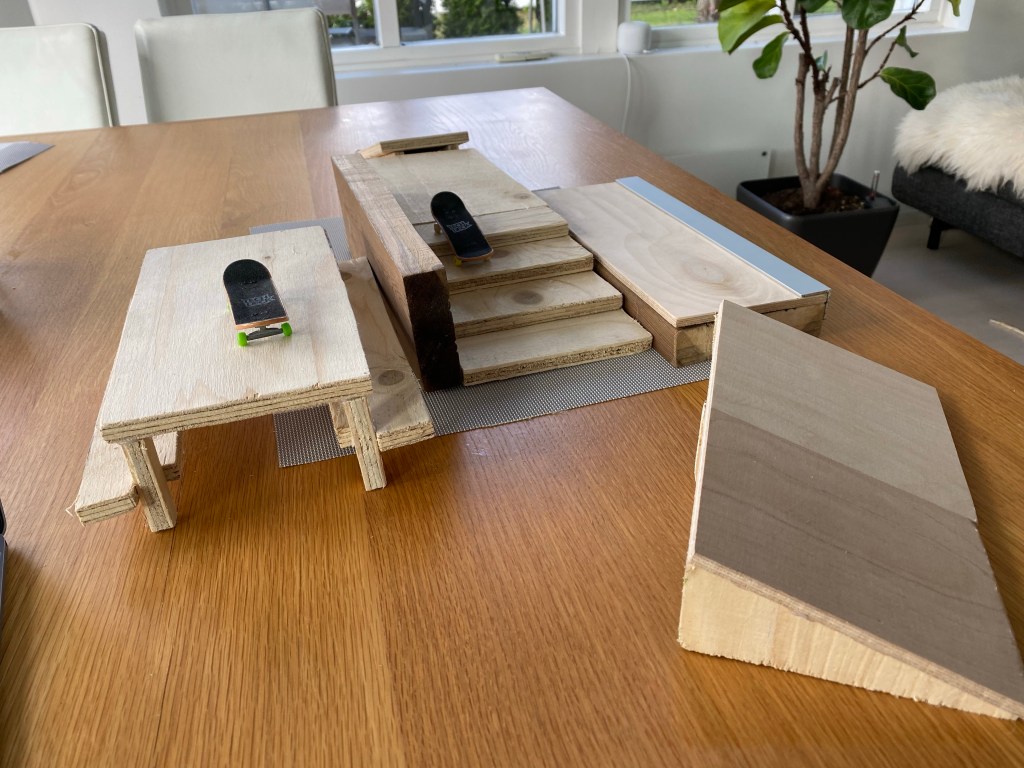 Vuosien saatossa olemme poikien kanssa sulkeutuneet autotalliin rakentelemaan puusta vähän kaikenlaista. On tehty pieniä skeittiramppeja, isoja skeittiramppeja, reilejä suksille ja skuuteille, hyppyreitä fillareille ja puusta jopa ”tramppaskuutti.”