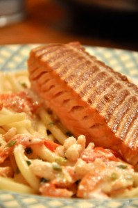 Teimme seuraavia rullia: – mäti, lohi, kurkku – paahdettu lohi, wasabi-pähkinärouhe, kurkku, majoneesi – katkarapu, avocado, mätiNigirit