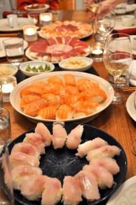 (8 aikuista ja sushia tuli paljon per henkilö!)