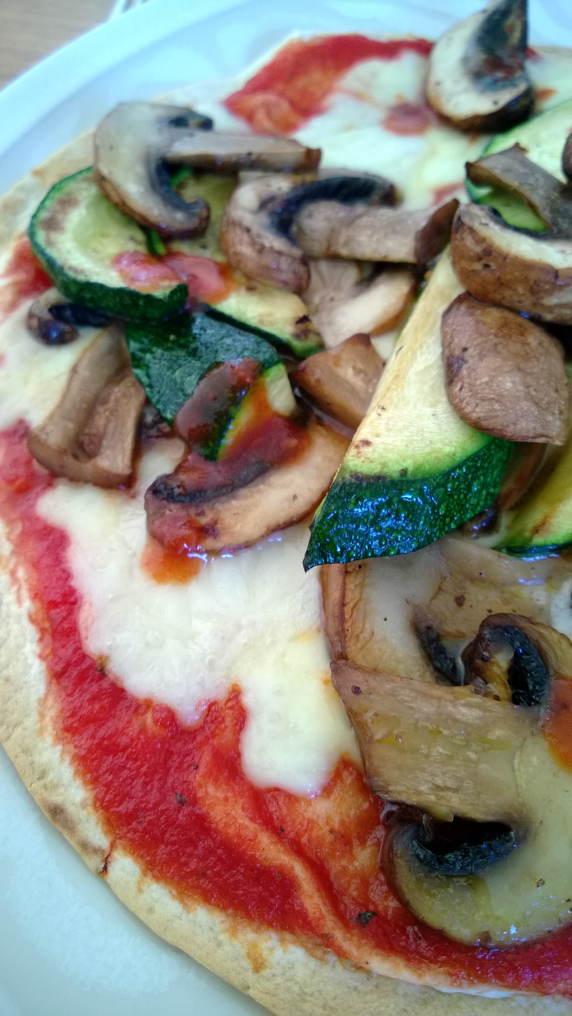 Tämä pizza on ns. ”pizza bianca”, eli ilman tomaattikastiketta. Lisää taikinan päälle reilusti mozzarellaraastetta. Asettele muut täytteet (smetanaa lukuun ottamatta) juuston päälle ja paista niin kuumassa uunissa kuin vain pystyt 8-10 minuuttia. Ota uunista ja nostele lusikalla smetanakekoja sinne tänne. Herkuttele!