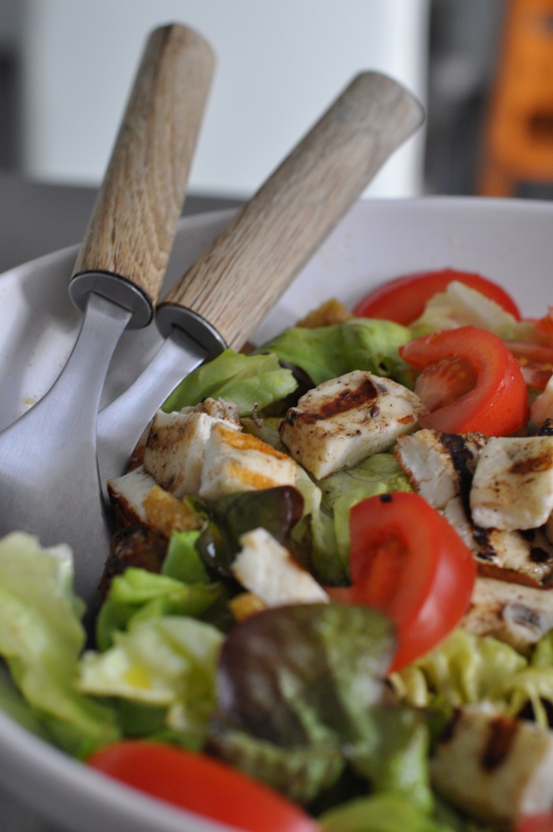 Salaatti paistetusta kylmäsavulohesta