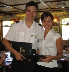 Ette muuten arvaa miksi kokki tällä lailla mokasi! Kokilla oli kunnia eilen, torstaina, opettaa tuoreita tangokuninkaallisia Elina Vettenrantaa ja Marko Lämsää toimimaan tarjoilijoina! Luit kyllä oikein, sillä kuningas ja kuningatar olivat yhden illan palveluksessamme tarjoilijoina, s/s Ukkopekan ”Julkkikset tarjoilee”-hyväntekeväisyysristeilyllä. Sen verran olivat mukavia, että meni kamerat sekaisin ja reseptikuvat ovat vielä keittiön hyllyllä. Kotiin tuli kuvat tangokuninkaallisista höyrylaivalla. No, koska niin kävi, niin resepti olkoon ilman kuvaa, mutta katselkaa kuninkaallisia sen sijaan 🙂