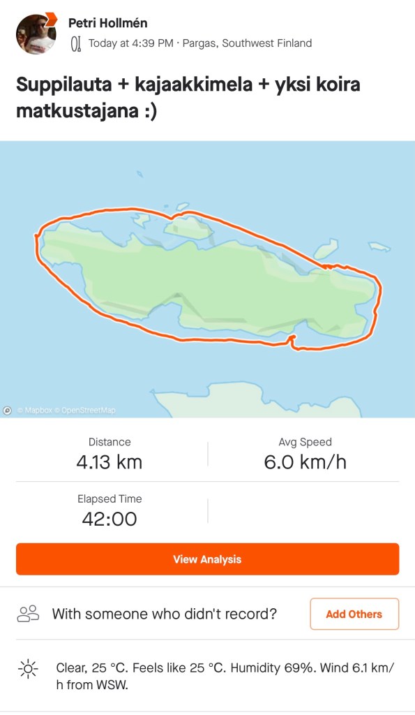 Airistolla pojat tilasivat pizzat ravintolasta ja kehuivat ne hyväksi. Airisto on muutenkin uudistunut hienosti tälle kaudelle, joten kannattaa käydä pistäytymässä! Itse vedin parit proteiinipatukat ja hyppäsin fillarin selkään. Kaikki hyvät päivät sisältävät pujehdusta, uintia ja pyöräilyä 🙂 Etupyörä kohti kotia ja äidin synttäreitä! Lauantaina viedään teinipoikamme omien synttäreidensä kunniaksi Särkänniemeen ja sunnuntaina palataan taas elämän perusasioiden äärelle: purjehtimaan.