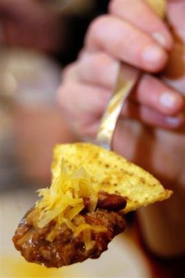 Anna hautua hellalla miedolla lämmöllä parisen tuntia. Tarjoa raastetun cheddarin ja maissilastujen kera.