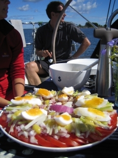 Jälleen on viikonloppu edessä. Pouta povaa televisiossa aurinkoa ja sunnuntaiksi jopa hellettä, joten kevyt, mutta ruokaisa salaatti sopii loistavasti vaikka sunnuntain lounaaksi laiturin nokassa nautittavaksi. Se on kesä taas! Taitaa olla jo toinen kerta tänä vuonna 🙂