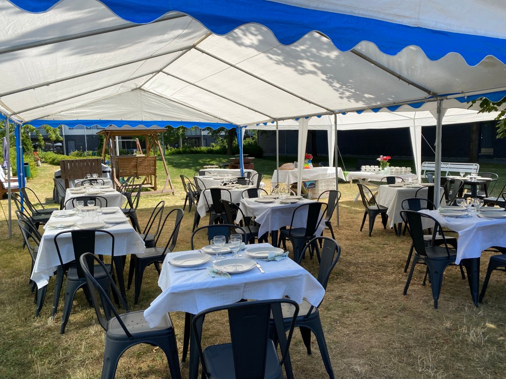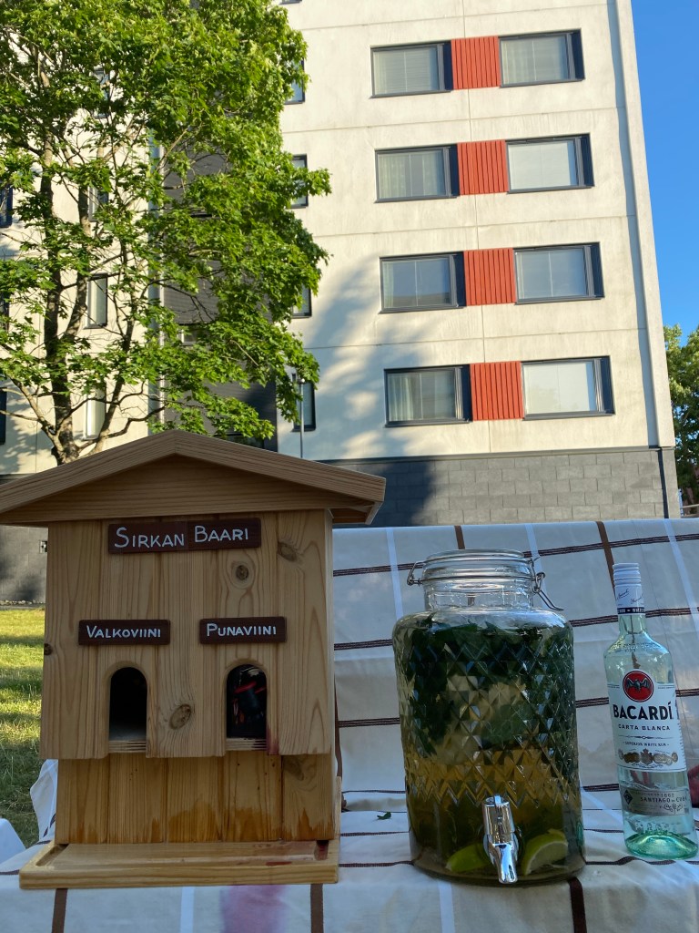 Juhlapaikaksi valikoitui tietenkin ulkotilat äitini taloyhtiön pihalla. Paikalla kävi juuri sopiva tuuli, jotta olo ei ollut tukala, vaan oikein sopiva.