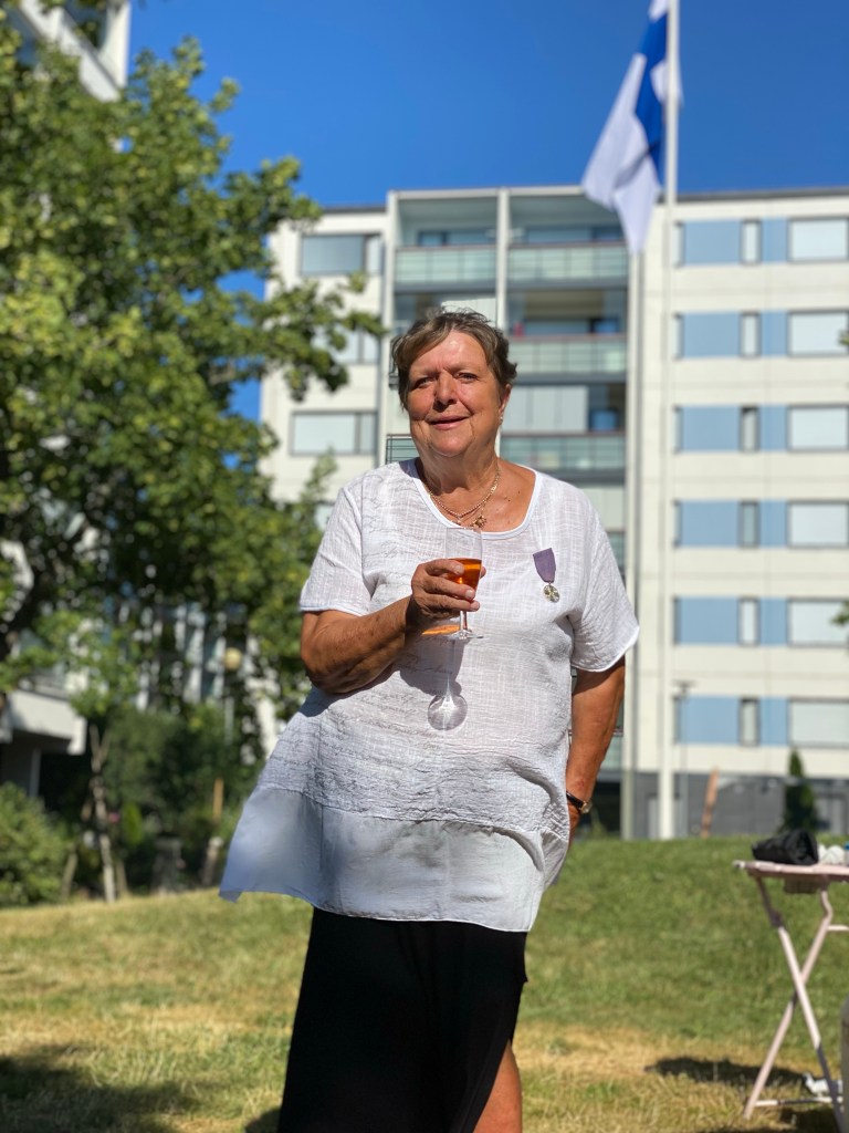 Juhlat olivat äidin näköiset. Ystäviä eri vuosikymmeniltä ja elämänvaiheista. Äiti asuu Kaarinan keskustassa kerrostalossa. Hänen elämää seuratessa ei voi kuin ihailla hänen kykyä rakentaa yhteisöjä, verkostoja ja ystävyyssuhteita. Kaarinan Mustahaperon kerrostalo lienee Suomen onnellisin, jos sellaista palkintoa jaettaisiin. Äiti pitää pihan kunnossa, järjestää kaikille asukkaille tapahtumia, myyjäisiä, mölkkykisoja ja leipoo iltapäiväkahveille kakut ja pullat.