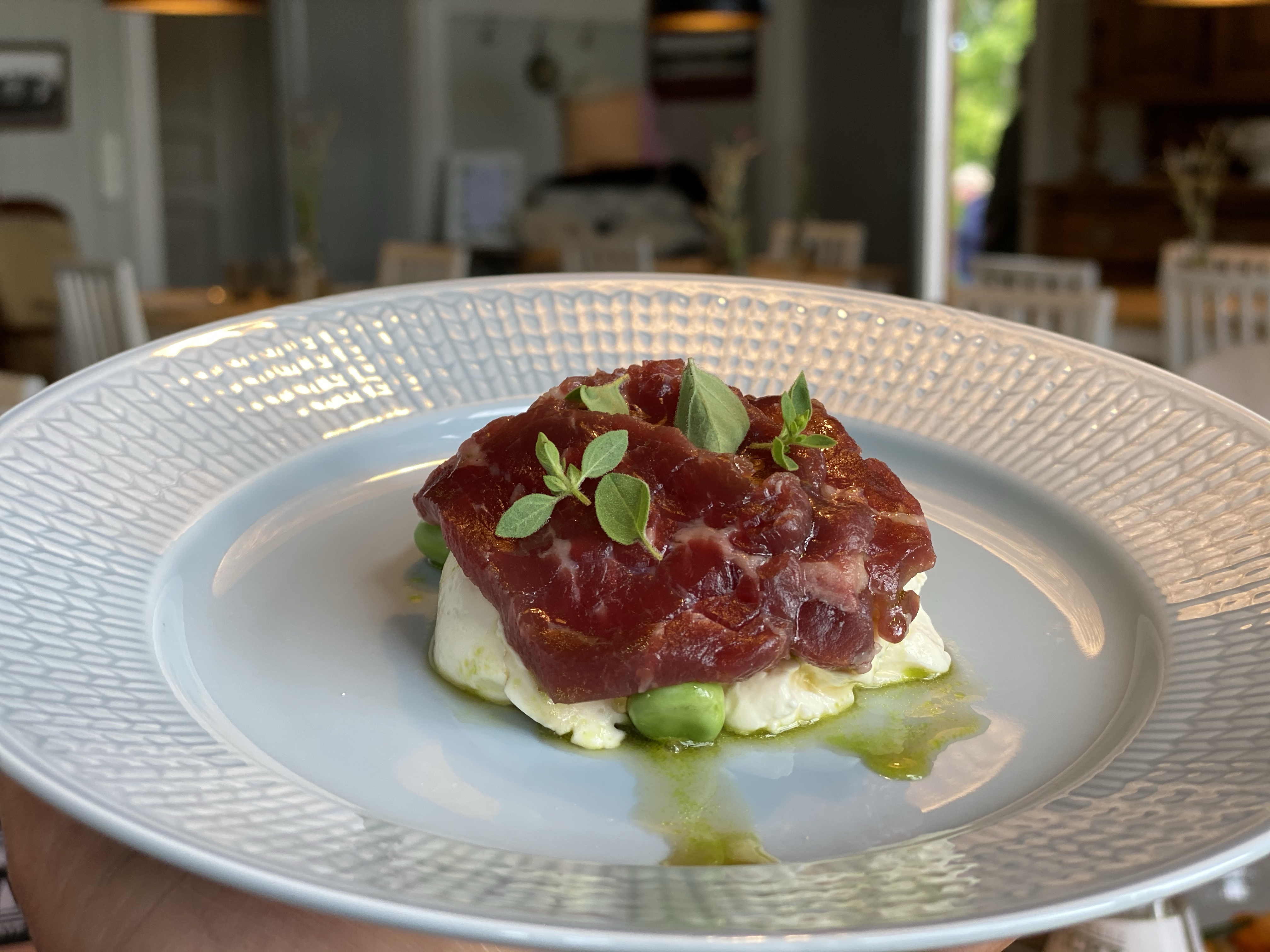 Degerbyssä juhlimme poikamme Oliverin 13-vuotissyntymäpäiviä. Ensiksi ajattelimme grillata veneessä kanansiipiä, mutta naapuriveneen suosituksesta varasimme pöydän uudesta Carlsro Badhotellista. Vain muutama viikko sitten avattu ravintola laajenee hotelliksi ensi vuodeksi. Upeassa miljöössä palveli tanskalaistyyppinen ravintola, joka menee ainakin meillä listalle ravintoloista, joihin menemme varmasti uudelleen. Flatbrød mädillä, porsaan kotletti ja raparperitiramisu veivät kielen mennessään.