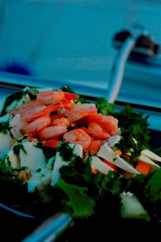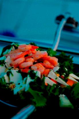 Paistettuja jättikatkarapuja feta-melonisalaattipedillä – Lienee syytä juhlaan…