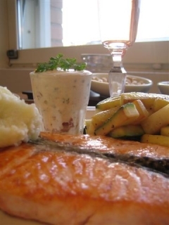 Lisukkeeksi esim. höyrytettyä parsa- ja kukkakaalia tai perunamuusia.