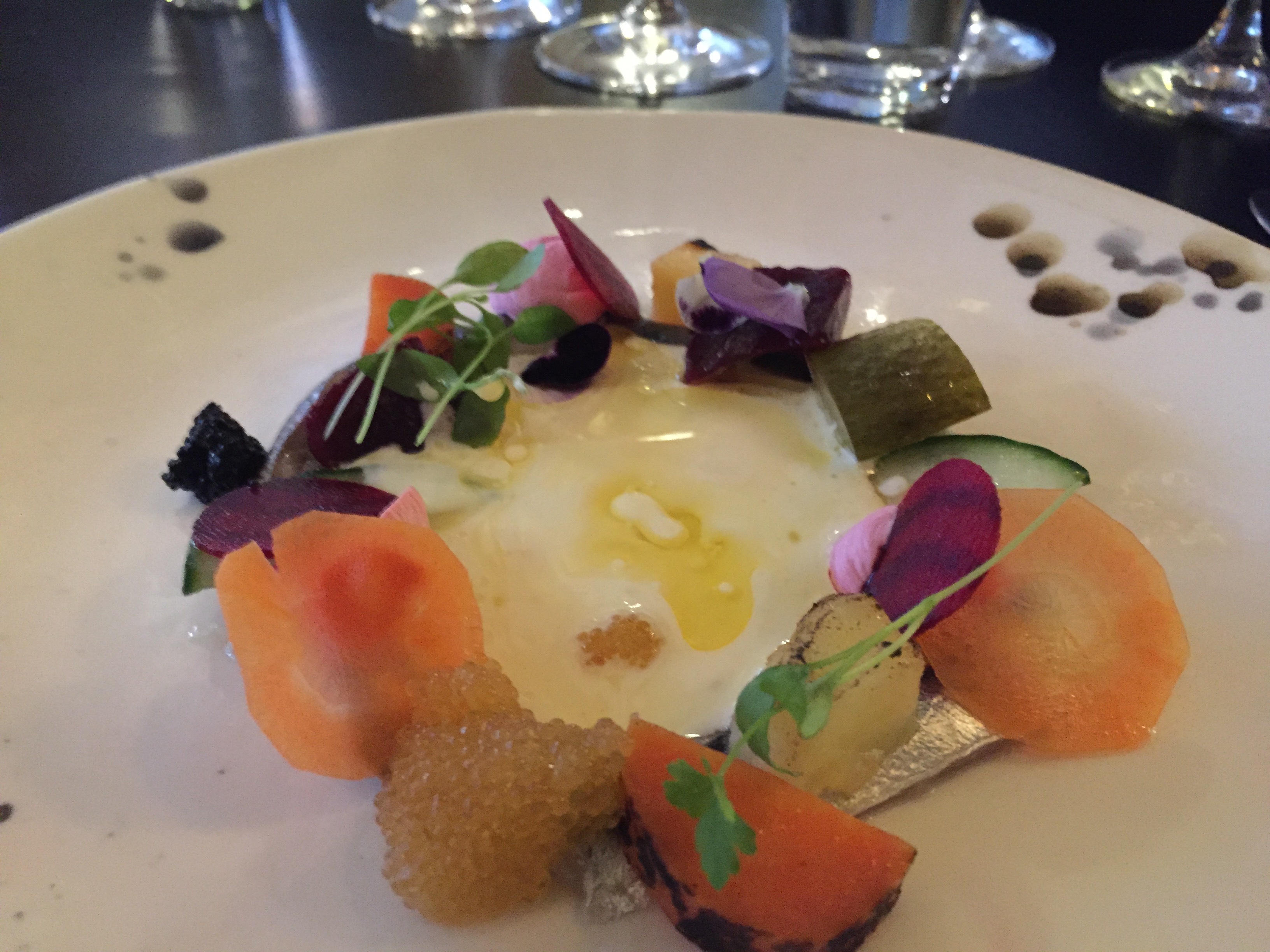 Erik and Topi where there, outside in the rain and making those dishes to us! They made five plates and served a perfect glass of Riesling with it (kids got grape juice).