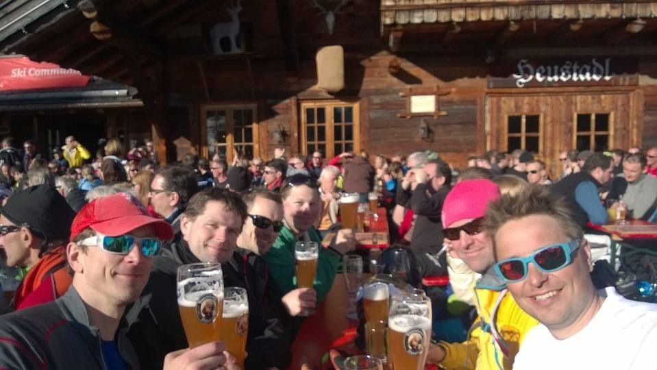 Mutta onneksi herätti, niin ehdittiin ajoissa rinteeseen. Täydellistä kevätlaskua, aurinkoa ja sohjolunta. Weissbier, kurpitsakeitto ja tuplaespresso. Siinä päivän eväät!