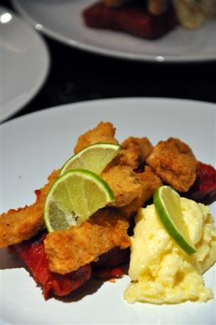 Valmista majoneesi: laita munankeltuainen kulhoon, vatkaa käsin tai vatkaimella koko ajan. Kaada öljyä ensin muutama tippa kerrallaan ja sitten hyvin ohuena nauhana keltuaisen joukkoon. Lisää lopuksi limen mehu, suola ja pippuri. Säilytä jääkaapissa.