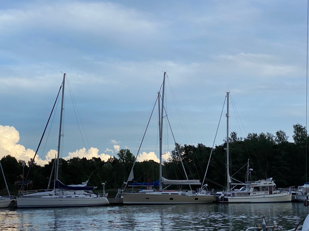 Aamulenkin ja -uinnin jälkeen otimme irti ja ajoimme koneella kohti Glada Laxenia. Tuuli ei virinnyt missään vaiheessa, joten homma meni konemarssiksi. Meitä se ei sinänsä haitannut, sillä oli mukavaa syödä lounasta keikkumattomassa veneessä 🙂