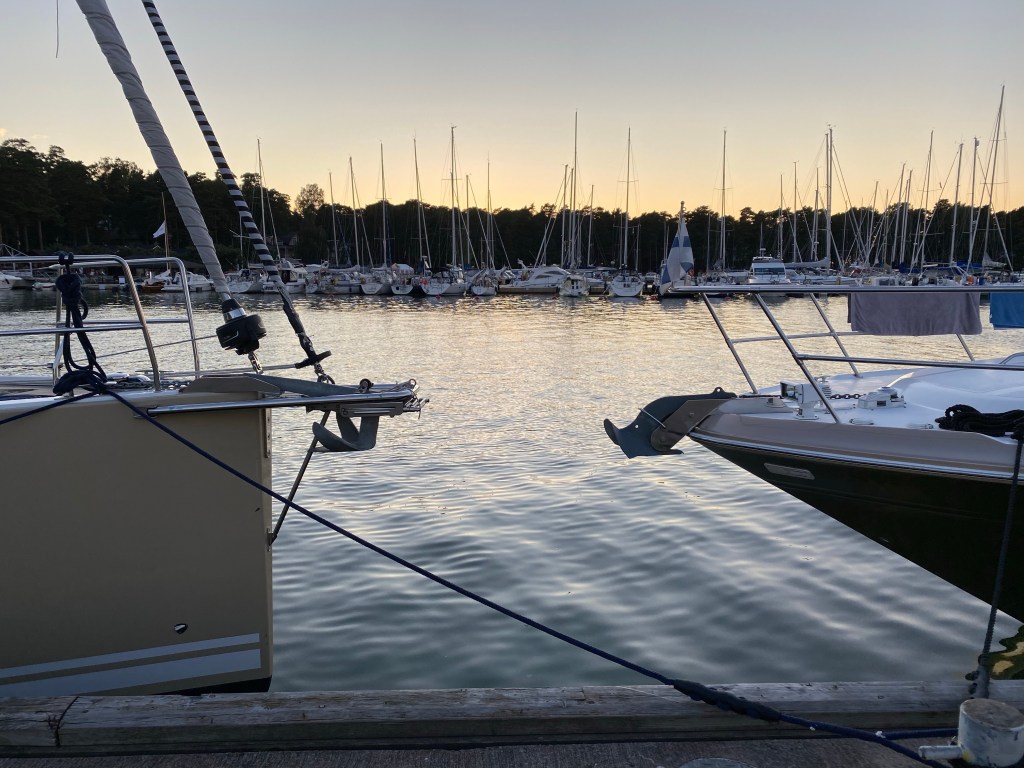 Satamat alkavat selkeästi jo hiljentyä, eli paras aika liikkua saaristossa on käsillä. Sottungassakin oli tilaa reilusti, vaikka saavuimme vasta iltasella. Saimme sataman parhaan paikan ison L-laiturin sisäpuolelta, aivan hyppytornin vierestä. Harmo, ettei pojat olleet mukana, sillä heille tämä paikka olisi ollut hyppimisen kannalta optimi.