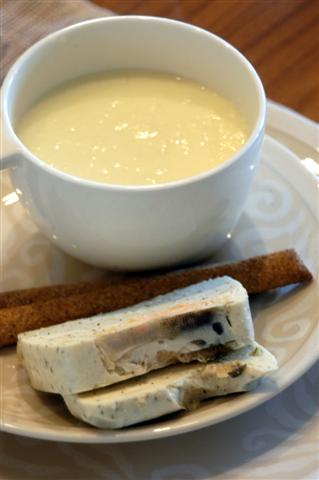 Tähän ruokaan teimme itse parsakeiton ja terriinin ostimme valmiina. Jos haluat tehdä terriinin itse, niin ohjeen samankaltaiseen löydät täältä. Voit hyvin tarjota keiton myös kylmäsavulohen tai savulohen kera. Näin kun teet, niin ruokailu tarkoittaa samaa kuin nauttiminen. Sen takaan.