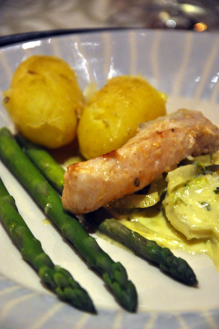 Parsaa, paistettua haukea ja hollandaise-kastiketta