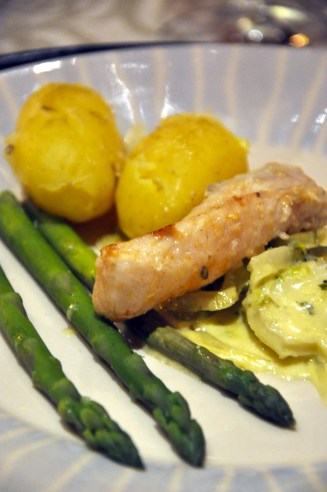Paistettua matikkaa, kermassa muhennettua fenkolia ja uusia perunoita