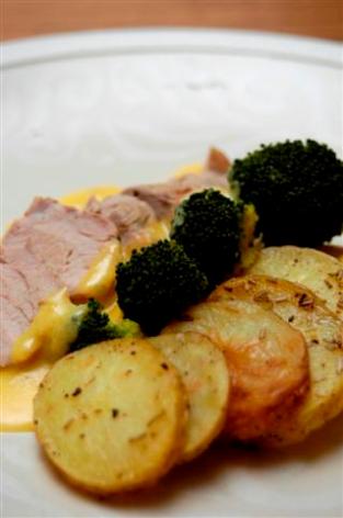Sinappipossua, rosmariiniperunat ja Bearnaisekastike