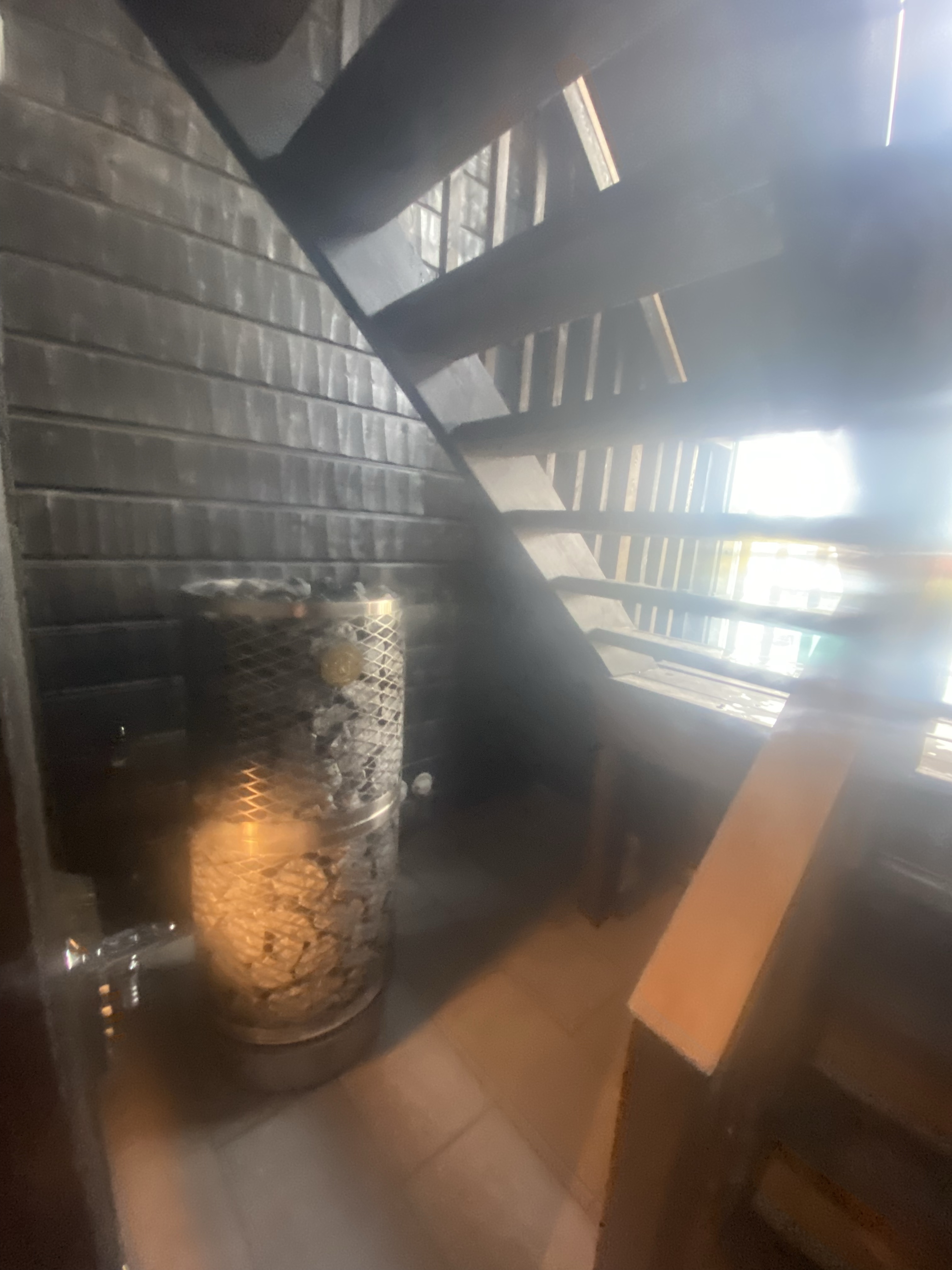 Saunahan on hieno kuin mikä! Kiuas on alhaalla ja löylyjä otetaan ylhäällä. Vettä kiukaalle heittäessä kannattaa käyttää hyvää sihtiä ja kaatotekniikkaa. Muuten menee ohi. Portaat ovat aika kuumat, koska kiuas on niiden alapuolella (ei toki suoraan), joten kannattaa ottaa släbärit mukaan. Poreamme oli säädetty 33-asteiseksi, joka oli toimiva näillä helteillä. Lauteilta on näkymä joko peltomaisemaan tai merelle. Saat itse valita. Kyllä tuon summan kerran kesässä maksaa tästä kokemuksesta!