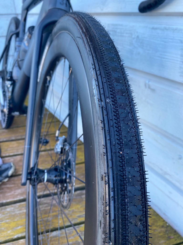 Viime kesänä pyörässäni oli alla täysnappulaiset sorarenkaat ja tälle reissulle Foxcompin Samu suositteli uusia renkaita. Panaracerin Gravel King SS:ssä on keskiosa lähes täysin sileä ja oikeilla paineilla tämä rengas rullaa asfaltilla kuin unelma, mutta toimii loistavasti myös maastossa tai soralla. Kuuma oli ja hiki virtasi, mutta silti homma oli puhdasta nautintoa. Kilometrit taittuvat niin paljon nopeammin uudessa ja tuntemattomassa kuin sillä peruslenkillä, jossa tunnet jokaisen mutkan ja suoran.