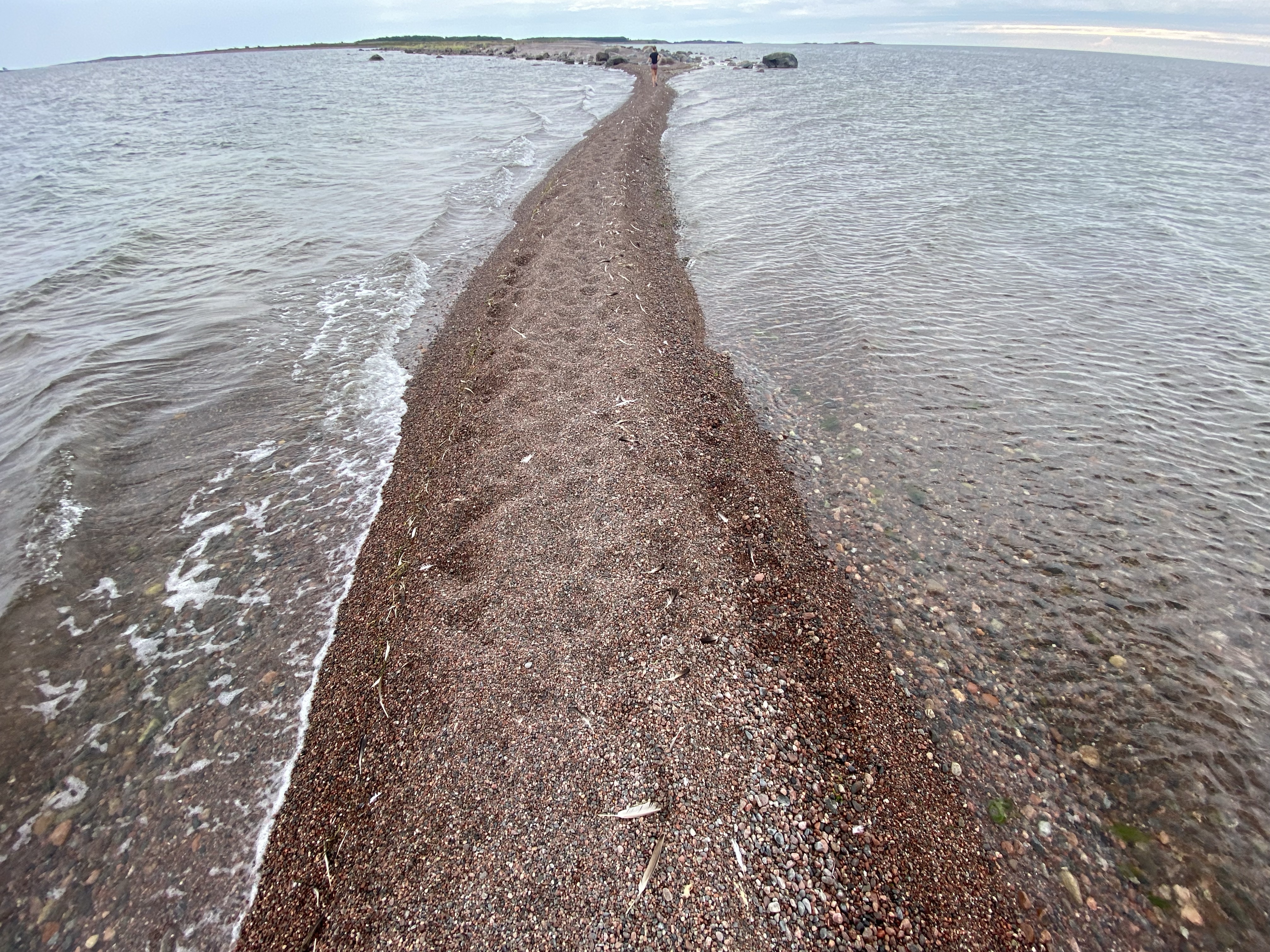 Päikkäreiden jälkeen lähdimme lenkille tyttäreni Julian kanssa. Lenkkeilimme kympin verran aivan Jurmon koilliskärkeen saakka – kirjaimellisesti viimeiseen mutkaan asti. Koilliskärki kapenee lopussa alle metrin ”hännäksi”, joka kiertyy kippuralle. Hännän molemmin puolin aallot murtuvat siihen eri suunnista ja se tekee paikasta hyvin erityislaatuisen. Matkalla bongasimme myös Jurmon ”munkringarit”, eli munkinkehät. Näiden kivirinkuloiden alkuperäistä tarkoitusta ei tunneta.
