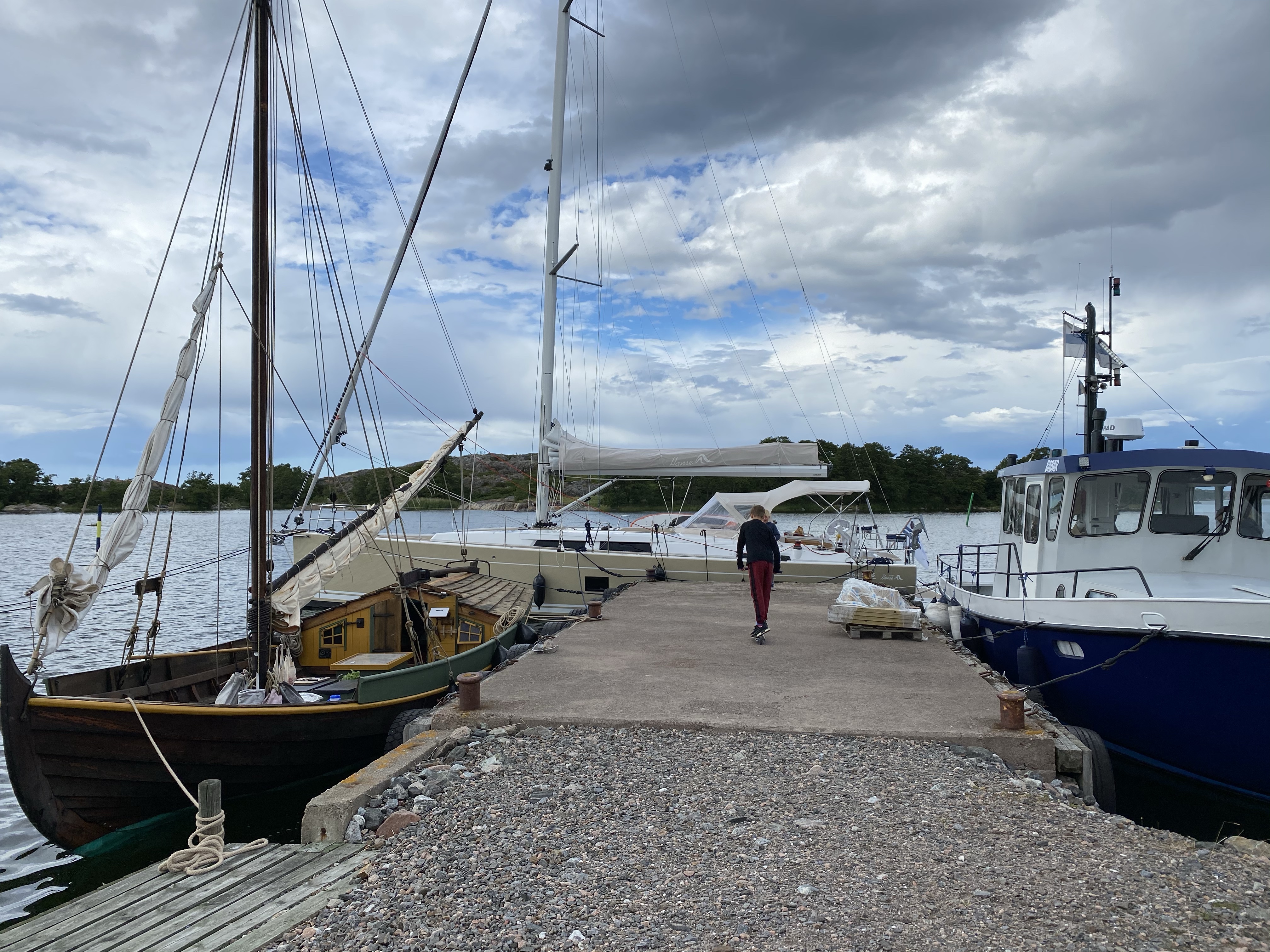 Vietimme Maarianhaminassa kaksi yötä, huolsimme sekä miehistöä että venettä. Täydensimme muonavarastot ja tutustuimme kaupunkiin. Itse pyöräilin ympäri manner-Ahvenanmaata 130 kilometrin verran ja frisbeegolfia pelasimme varmaan kymmenen kierrosta. Pommernin näyttely audiokierroksineen oli mielenkiintoinen, myös lasten mielestä. Indigon terassin ruokaa voi kehua!