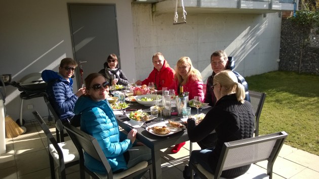 Viimeinen lounas ”klaanin” kanssa nautittiin kotiterassillamme helmikuisessa auringonpaisteessa. Sitten oli aika hyvästellä suurin osa porukasta ja roudata tavarat sekä ihmiset lentokentälle.