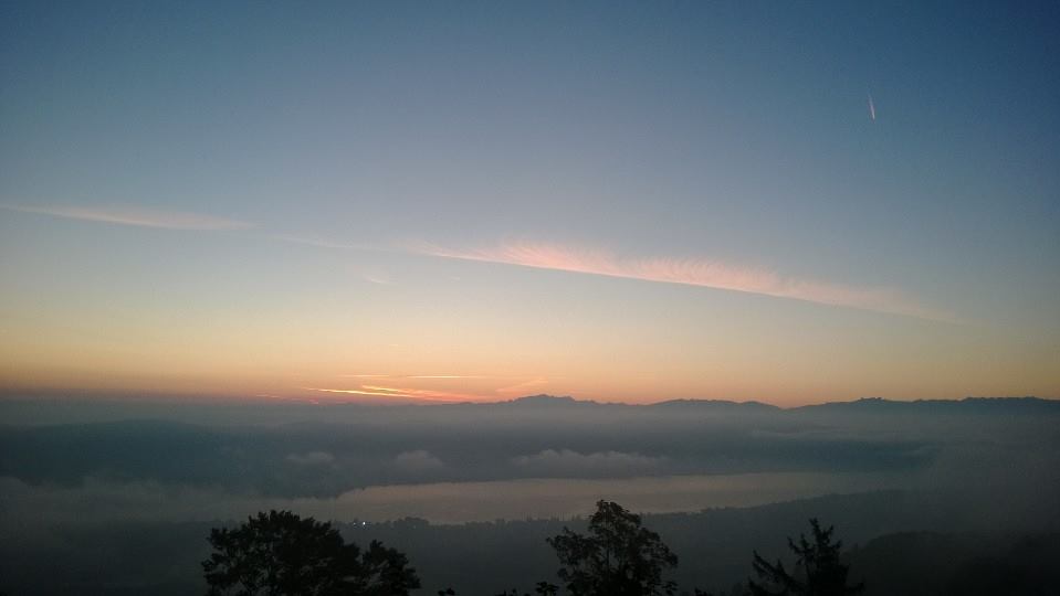 Aamu valkeni Limmat-joen laaksossa sumuisena, kuten se niin usein tekee. Mikäli ilma on jossain sumun yläpuolella aurinkoinen, niin usein sumu haihtuu iltapäiväksi.